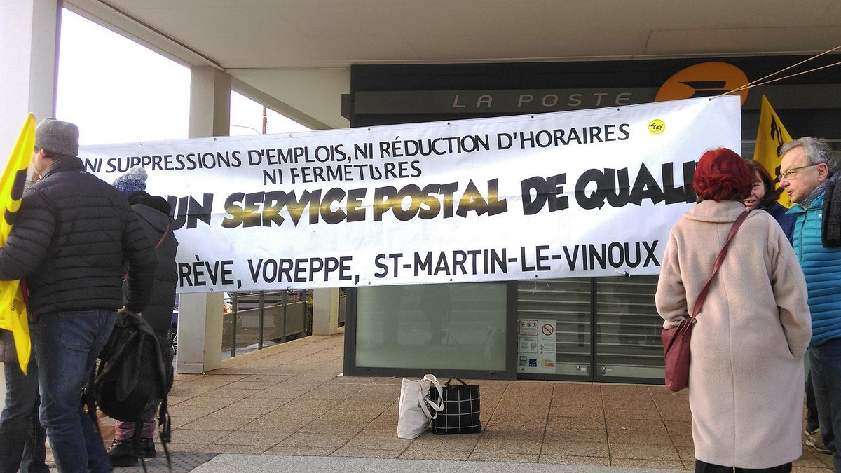 Ce samedi 26, les bureaux de poste de Saint Egrève, Voreppe et Saint-Martin-le-Vinoux étaient fermés car les employés, en grève, protestent contre la prochaine, ou plutôt la énième réorganisation. Réunis devant le bureau de Saint Egrève, ils ont fait signer une pétition aux usagers à qui ils ont expliqué les plans de la direction : réduction des horaires d’ouverture des 3 bureaux, un poste supprimé et davantage de samedis travaillés. Bref, une surcharge de travail. Du côté usagers, les files d’attentes ne vont pas manquer de s’allonger. Encore plus de stress pour tout le monde.