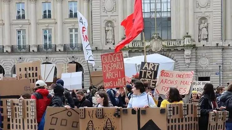 200 étudiants et personnels de l’école d’architecture ont manifesté le 24 mars dans le centre-ville de Rennes.