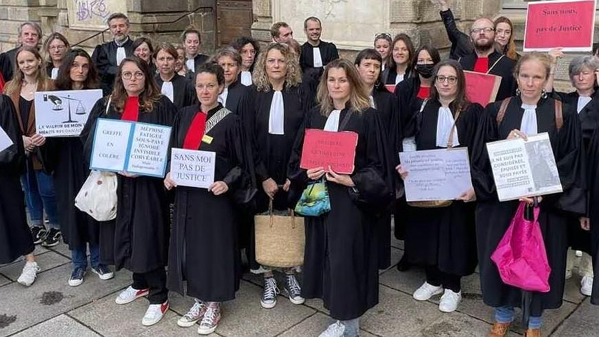 Après la mobilisation du 26 juin, ils se sont de nouveau rassemblés en grève le 21 septembre alors que le ministre de la Justice Dupont-Moretti venait à Rennes.