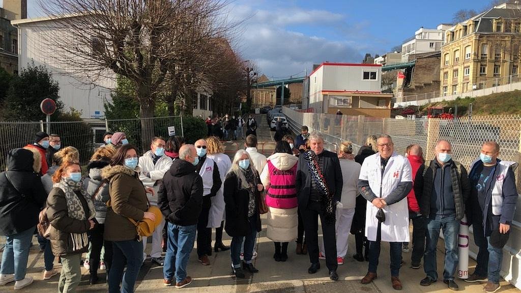 Pourtant, ils n'ont pas voulu laisser s'approcher la trentaine de personnes, personnel paramédical et médico-social travaillant dans la psychiatrie, qui comptaient s'inviter à la petite fête pour parler de leurs revendications. Ils réclament la stagiérisation du personnel contractuel ainsi que du personnel en nombre suffisant car des bâtiments flambants neufs ne suffiront pas régler les problèmes de sous effectifs chroniques dénoncés depuis des années. Le personnel médico-social, grand oublié du Ségur de la Santé, réclame également les hausses de salaires et les primes auxquels ils n'ont pas eu droit.