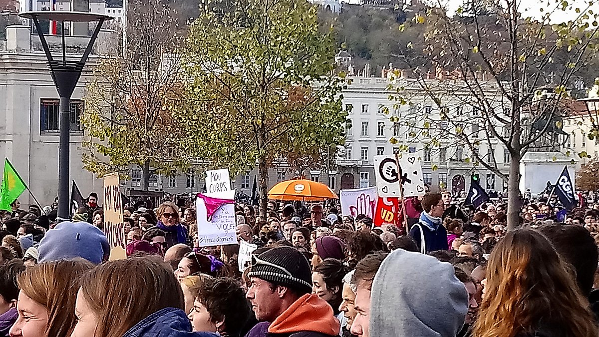 Plusieurs milliers de personnes, dont beaucoup de jeunes, ont manifesté, ce samedi 24 novembre, contre les violences sexistes et sexuelles au départ de la place Bellecour. De nombreux manifestants, femmes et hommes, avaient apporté leurs pancartes : « Stop aux violences », « La femme est le prolétaire de l’homme », « Le féminisme ne tue pas, le patriarcat si », « Range ton zizi, je n'ai pas dit oui »... D’autres dénonçaient les réactions de policiers des commissariats lyonnais lors de dépôts de plainte pour violence ou viol conjugal.