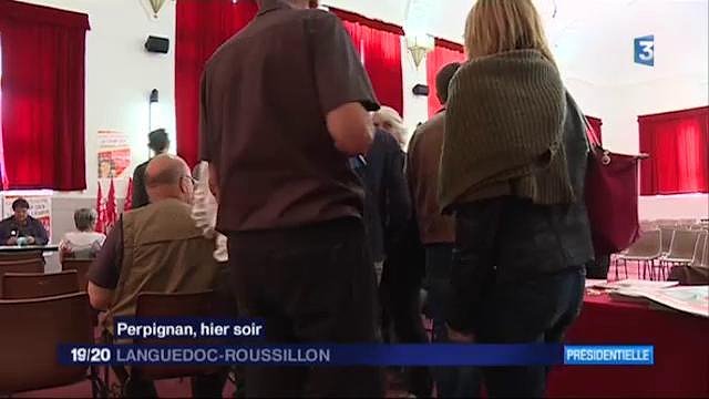 19/20 France 3 Languedoc-Roussillon : Perpignan : réunion publique de soutien à Nathalie Arthaud