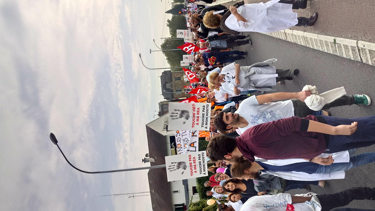 Le 18 octobre, plus de 400 personnes se sont retrouvées devant la mairie des Mureaux, dans les Yvelines, pour se rendre en manifestation jusqu’à Meulan, devant l’hôpital intercommunal de Meulan-Les Mureaux, à deux kilomètres.