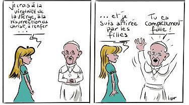 Et pour que la coupe soit pleine, dans son avion de retour, le pape y est allé de son couplet homophobe en assimilant l’homosexualité à une déviance ou à une maladie. Le même avait déjà osé comparer l’avortement au génocide des Juifs, déclarant en juin, au moment du vote sur l’avortement en Argentine : « Au siècle dernier, tout le monde était scandalisé par ce que faisaient les nazis pour veiller à la pureté de la race. Aujourd’hui, nous faisons la même chose en gants blancs. »