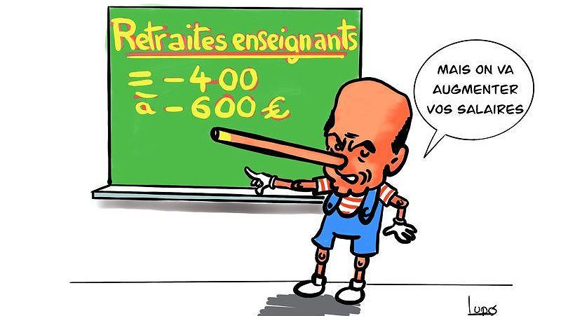 Loin de calmer le jeu, la prestation écrite de Blanquer a provoqué la colère et en a conforté plus d’un dans l’idée de se mettre en grève. Premier sujet de colère : la promesse que le minimum contributif serait porté à 1 000 euros. En clair, un salarié qui aurait travaillé et cotisé toute sa vie (sans période de chômage) aura la chance de toucher un minimum de 1 000 euros ! Aujourd’hui, le minimum contributif est à 970 euros. On voit que la promesse du gouvernement est plutôt la menace que tous tombent dans la pauvreté. C’est en tout cas ainsi que les enseignants l’ont comprise.
