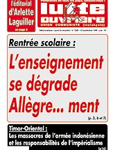 Ces gens-là n'ont aucune pudeur ! Comment oser parler " d'égalité des chances ", même sur le plan strictement scolaire ? Les discours sur le " nombre moyen d'élèves " par classe ne changent rien aux classes surchargées dans les écoles des quartiers populaires, là où justement il faudrait des classes à l'effectif réduit pour assurer un enseignement et pas du gardiennage ! Ils ne changent rien à l'inadaptation de ces véritables casernes surpeuplées que sont les collèges et les lycées de banlieue. Ils ne changent rien aux fermetures de classes dans les écoles de campagne, obligeant les élèves à se déplacer vers l'école d'une autre commune plus ou moins éloignée. Ils ne changent rien à l'insuffisance de matériel et au délabrement, souvent, des bâtiments eux-mêmes.