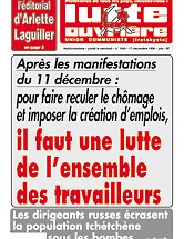 Les manifestations du samedi 11 décembre contre les licenciements et la politique du grand patronat ne se sont pas déroulées qu'à Paris. Cette fois elles se sont déroulées aussi dans de nombreuses villes de province, comme une continuation de la journée du 16 octobre à Paris. La grande presse a mis à profit le fait que la manifestation parisienne avait fusionné avec celle prévue par les associations de chômeurs qui revendiquent (à juste titre) le relèvement des minima sociaux, pour ne retenir que cet aspect-là du problème. En quoi elle veut tromper son public, voire rassurer le patronat. Car si à Paris ce contenu se voyait moins, dans les manifestations des villes de province ce qui ressortait, comme pour le 16 octobre, c'était l'exigence de prendre sur les profits patronaux pour financer de véritables mesures contre le chômage.