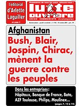 Il n'a pas fallu attendre bien longtemps pour constater que les bombardements à jet continu des villes afghanes par l'aviation anglo-américaine tuaient et blessaient des femmes, des enfants, des vieillards, bien plus qu'ils ne réussissaient à traquer les taliban et les sbires de Ben Laden. Les images de ces familles qui ne savent même plus où se réfugier témoignent de la terreur que ces bombardements ont répandue dans la population civile afghane, qui pourtant n'est pour rien dans les attentats commis contre d'autres civils aux Etats-Unis. Ce sont d'ailleurs ces mêmes civils afghans qui ont eu à subir les méthodes moyenâgeuses de ces taliban que les dirigeants américains avaient soutenus et mis en place.