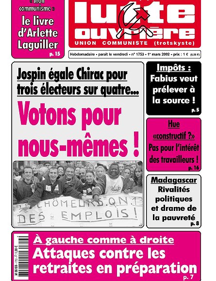 D'après un sondage publié par la presse le lundi 25 février, 74 % des Français ne voient pas de différence entre le programme proposé par Chirac et celui proposé par Jospin dans le cadre de leurs campagnes électorales respectives.