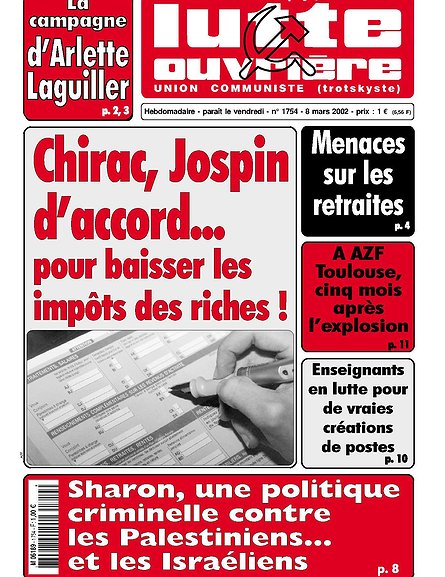 L'un, Chirac, promet que, s'il est élu, il réduira les impôts sur le revenu d'un tiers sur cinq ans. En admettant même qu'il tienne cette promesse, ce qui n'est pas dit, il oublie de préciser que l'impôt sur le revenu ne représente que moins de 20 % des impôts récupérés par l'Etat, et que la moitié des contribuables ne le payent pas, non pas parce qu'ils bénéficient d'un régime de faveur, mais parce que leurs revenus sont insuffisants pour être imposables. Pour ceux-là cette mesure sera sans effet. Les riches, par contre, en seraient les principaux bénéficiaires car cette baisse, s'appliquant aux tranches supérieures de cet impôt, leur procurerait une remise bien plus grande que celle d'un contribuable du bas de l'échelle. Mais surtout, ce que Chirac ne dit pas, c'est que le plus gros des recettes fiscales de l'Etat provient de l'impôt indirect, comme la TVA ou l'impôt sur le carburant, que tous, riches et pauvres, payent, qu'ils soient milliardaires ou salariés, chômeurs, retraités, Rmistes, en tant que consommateurs. Impôt injuste s'il en est puisqu'il pèse bien plus, proportionnellement, sur les pauvres que sur les riches.