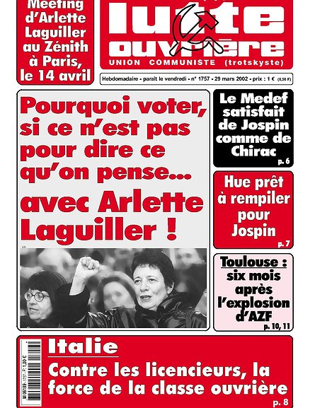 Les porte-parole de la droite, qui s'inquiètent de voir qu'une fraction du monde du travail plus importante que par le passé pourrait cette fois-ci voter pour Arlette Laguiller, les porte-parole de la gauche gouvernementale, qui s'alarment en plus à l'idée de perdre des voix, affirment à qui mieux mieux que le vote en faveur de la candidate de Lutte Ouvrière serait stérile, parce qu'Arlette refusera de prendre parti au second tour. Pour la plupart de ces gens-là, comme pour la majorité des commentateurs, le premier tour est en fait une formalité inutile, le seul scrutin qu'ils trouvent important, c'est celui du deuxième tour.