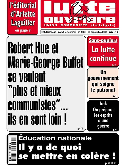 Plusieurs centaines de milliers de participants à la fête de L'Humanité, même si un certain nombre ne sont venus que pour le spectacle, ceux qui ont écouté les discours de Robert Hue et de Marie-George Buffet étaient largement quelques dizaines de milliers et cela montre que le PC, malgré son score désastreux à la présidentielle et malgré toute sa politique passée, n'est pas mort et que nombre d'énergies, nombre de militantes et de militants se dévouent pour le faire vivre.