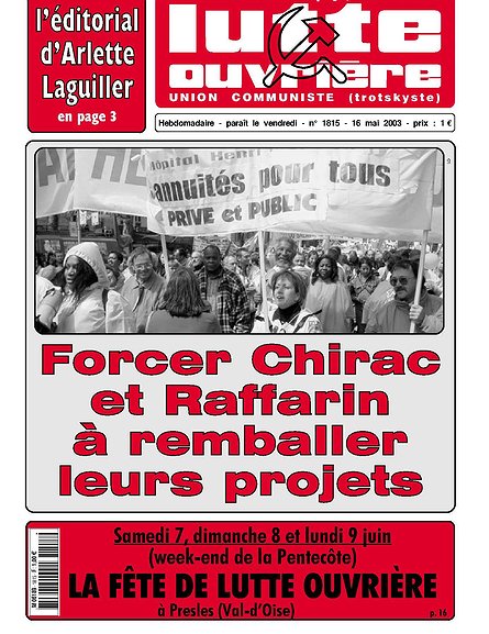 Le Premier ministre, Raffarin, a déclaré que ce qu'il appelle "la réforme" des retraites passera de toute façon, et que "ce n'est pas la rue qui gouverne". Mais Chirac, Raffarin et Fillon ne gouvernent pas plus: ils obéissent au MEDEF. Derrière toutes les arguties développées sur la nécessité d'augmenter les années de cotisation et d'élever l'âge de la retraite, il n'y a rien d'autre que la volonté du patronat de payer toujours moins, que ce soit pour les salaires ou pour les retraites, que ce soit directement, pour ceux du secteur privé, ou indirectement pour ceux du secteur public.