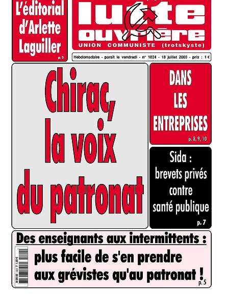 Lors de la traditionnelle intervention télévisée du 14 juillet du chef de l'Etat, le président de la République a répété que "L'Etat ne peut pas décider de tout", en osant affirmer que sur la question des retraites il y aurait eu, "pour la première fois", "un dialogue et une concertation sociale". Mais quel dialogue ? Quelle concertation ? Le Medef du baron Seillière a posé ses conditions aux syndicats, à prendre ou à laisser. Il a trouvé deux confédérations syndicales qui ne représentent pas grand-chose (et pas même leurs militants, à en juger par l'ampleur des remous qui secouent la CFDT) pour donner leur aval, sous prétexte que cela aurait pu être encore pire, à un texte de régression sociale. Et le gouvernement, qui ne peut pas "décider de tout", a tout de même décidé d'avaliser ce document, donc, quoi qu'en dise Chirac, de faire intervenir l'Etat.