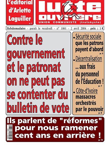 Cela n'a pas empêché Raffarin d'annoncer dès dimanche soir 28 mars que le gouvernement poursuivrait ce qu'il appelle ses réformes: la démolition des retraites, puis bientôt de la Sécurité sociale, l'Éducation nationale étranglée, la Recherche aussi, le logement social inexistant face à la flambée des loyers, les indemnités de chômage amputées. Il est question de limiter le droit de grève, de réformer le droit du travail et de restreindre les possibilités d'action des syndicats. Avant d'être un projet du gouvernement, c'en était un de Seillière, le président du Medef, et on ne peut pas douter que cela sera bientôt approuvé par l'Assemblée aux ordres.