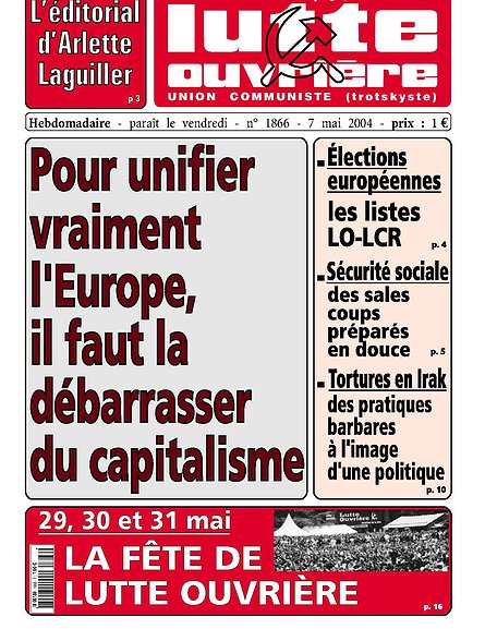 Pour les cérémonies officielles marquant l'entrée de dix nouveaux États membres au sein de l'Union européenne, la télévision nous a montré l'installation devant les bâtiments officiels de dix mâts supplémentaires, destinés à autant de drapeaux nationaux: tout un symbole de la manière dont les politiciens de la bourgeoisie veulent «construire» l'Europe... en gardant soigneusement les États nationaux hérités du XIXe siècle, quand ce n'est pas du moyen-âge. En effet, en dépit de tous les discours de circonstance sur l'amitié entre les peuples, la seule chose qui intéresse vraiment les hommes politiques et les groupes capitalistes dont ils défendent les intérêts, c'est la création d'un marché plus vaste pour placer leurs marchandises et leurs capitaux.