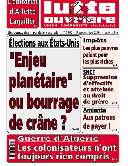 Cette élection a été présentée comme une "élection historique" et, pour certains journaux, son enjeu serait "planétaire". Mais peut-on imaginer que la bourgeoisie américaine, la plus puissante du monde, que les grands groupes industriels et financiers qui dominent le pays et finalement le monde entier jouent l'avenir politique sur un coup de dé électoral? En réalité, une multitude de filtres existent, pour présélectionner les candidats et ne laisser concourir, le jour J, que ceux qui conviennent aux grands possédants, qui détiennent la réalité du pouvoir. Le filtre des appareils des deux grands partis, le Parti républicain et le Parti démocrate, le filtre des grandes chaînes de télévision et des grands groupes de presse, c'est-à-dire de leurs propriétaires. Le filtre surtout de l'argent. Le prix de la campagne est à la mesure de l'immensité du pays et, avant que les bulletins de vote tranchent entre les concurrents, ce sont les chèques des donateurs qui décident qui a le droit de concourir.