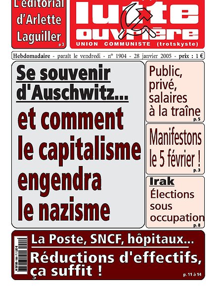 Le soixantième anniversaire de la libération du camp d'Auschwitz a donné lieu à une multitude d'émissions de télévision, d'articles de journaux, au nom du "devoir de mémoire", pour éviter, nous dit-on, que de tels faits puissent se reproduire. Et c'est vrai qu'il faut se souvenir, mais pas seulement de l'abominable existence des camps de concentration, de la barbarie nazie, mais aussi des raisons qui ont permis cela.