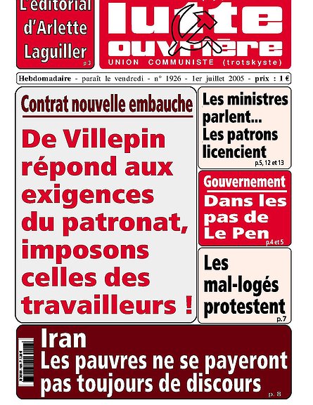 Quinze jours après que de Villepin a présenté aux députés le programme de son gouvernement, son «contrat nouvelle embauche», avec sa «période d'essai» de deux ans qui permettra aux employeurs de licencier un salarié sans avoir d'explication à donner et sans indemnité, ou avec une indemnité infime, apparaît de plus en plus clairement pour ce qu'il est, c'est-à-dire une nouvelle remise en cause de la législation du travail.