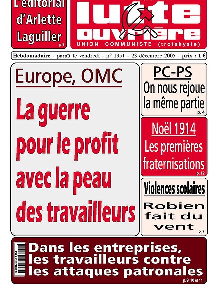 Deux des institutions du monde capitaliste viennent de terminer leurs réunions au sommet. Les 25 pays de l'Union européenne se sont mis d'accord sur un budget après trois mois de crise. L'Organisation mondiale du commerce (OMC), censée réglementer le commerce international, a accouché, à Hong Kong, d'un compromis entre les 149 pays qui la composent. Par-delà leurs différences, les deux institutions ont pour but de faciliter le commerce international.