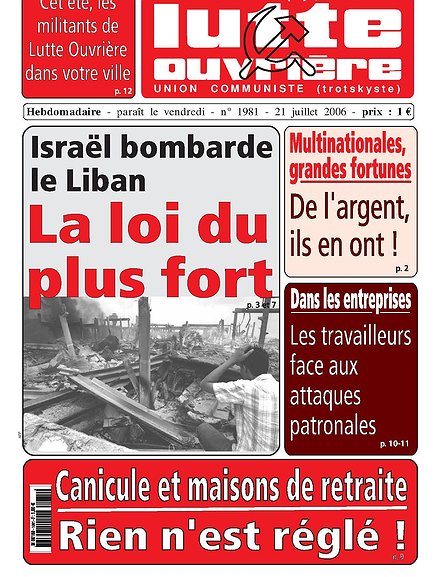 Les porte-parole de l'armée israélienne, qui ont largement accès aux radios françaises, prétendent que ces opérations sont justifiées par le fait que les milices chiites libanaises ont tué trois de leurs soldats et en ont enlevé deux autres. Mais quand, peu de temps auparavant, la marine israélienne avait massacré au canon toute une famille palestinienne sur une plage de Gaza, c'est tout juste si le gouvernement israélien avait formulé quelques regrets.