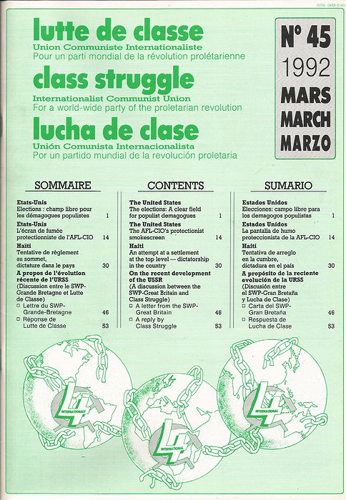 Le Socialist Workers Party de Grande-Bretagne nous a adressé, à la suite de la publication de l'article "L'URSS après le putsch" dans Lutte de Classe n° 41 d'octobre 1991, le texte ci-dessous. Nous le publions d'autant plus volontiers, avec une réponse de Lutte de Classe, que cet échange d'idées …