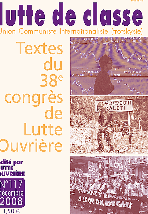 10 octobre 2008L'événement international majeur de 2008 est la crise de l'économie capitaliste. Elle est passée, successivement, d'une crise immobilière localisée aux États-Unis à une crise financière internationale et est en train de se transformer en crise économique tout court. Son développement dans les mois qui viennent pèsera d'un …