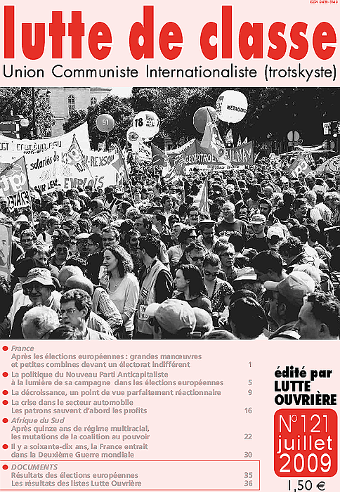 Nous publions ci-après les résultats obtenus par les listes Lutte Ouvrière aux élections européennes du 7 juin 2009, regroupés par régions et départements à l'intérieur de chacune des sept circonscriptions métropolitaines. Rappelons que Lutte de Classe a déjà publié dans ses numéros 118 (février-mars 2009) et 120 (mai-juin 2009) plusieurs …