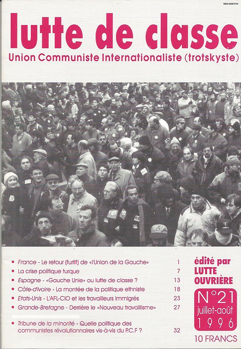 Avertissement : Les lecteurs de "Lutte de Classe" savent qu'il existe au sein de notre organisation une tendance minoritaire qui soumet des textes différents de ceux de la majorité aux votes de nos camarades, lors de nos conférences nationales. Ces textes sont systématiquement publiés dans nos colonnes. Ces camarades ont …
