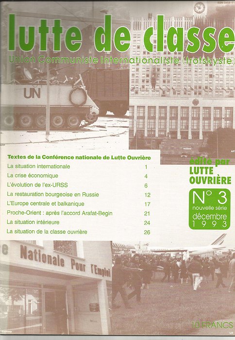 Les textes publiés dans ce numéro ont été adoptés lors de la Conférence nationale de l'organisation française Lutte ouvrière de fin 1993. Les mêmes camarades que l'année précédente ont soumis à la discussion et au vote un deuxième texte sur l'évolution actuelle de l'URSS. Sur l'ensemble de l'organisation, ce dernier …