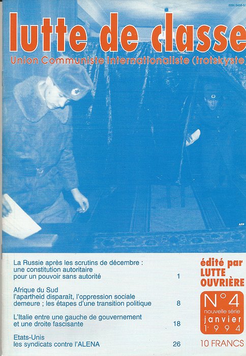 Cela fait maintenant plusieurs années que l'Afrique du Sud se dirige vers l'abandon définitif de l'apartheid.Pendant plus de quarante ans, ce système monstrueux institutionnalisa la ségrégation raciale. Instrument de la bourgeoisie, sud-africaine comme internationale, contre les classes exploitées, l'État sud-africain était en même temps l'instrument de défense des privilèges …