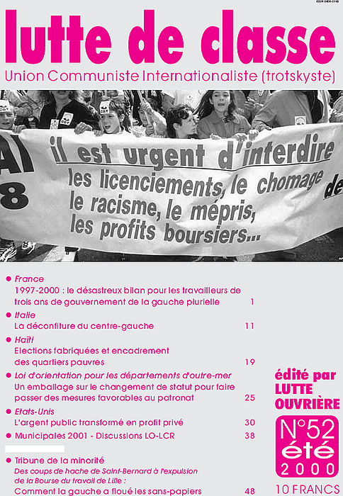 Dans le numéro 51 (mai-juin 2000) de Lutte de Classe, nous avons publié le texte de quatre lettres échangées entre Lutte Ouvrière et la Ligue Communiste Révolutionnaire dans le cadre de la discussion engagée entre nos deux organisations depuis janvier 2000 à propos des élections municipales de 2001.Dans le présent …
