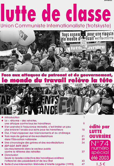La loi sur les retraites concoctée par le gouvernement Chirac-Raffarin est en passe d'être adoptée par le Parlement où le gouvernement dispose d'une large majorité. Bien que les sondages aient indiqué que près des deux tiers de la population soutenaient les grévistes et les manifestants qui s'opposaient au projet du …