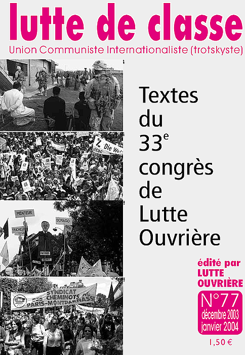Le présent numéro de Lutte de Classe est entièrement consacré aux textes, résolutions et motions discutés lors du 33e congrès de Lutte Ouvrière qui s'est tenu les 6 et 7 décembre 2003. Il a réuni près de 450 délégués élus dans les assemblées locales, en présence de plusieurs centaines de …