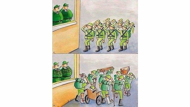 Si tu veux la paix, prépare la guerre nous expliquent-ils. Si les travailleurs veulent la paix, il faudra surtout renverser ce système fou et barbare.