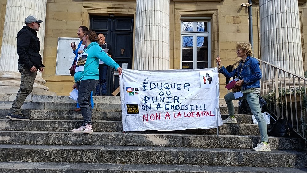 Mardi 25 mars à l’appel du, SNPES-PJJ/FSU, CFDT, UNSA les personnels de la protection judiciaire de la jeunesse étaient en grève un peu partout : Limoges, Brive la Gaillarde, Bordeaux, Lyon, Paris, Dijon, Marseille, Clermont-Ferrand… contre la loi Attal, qui prévoit de « pénaliser » les mineurs de 16 ans, et de supprimer l’excuse de minorité.